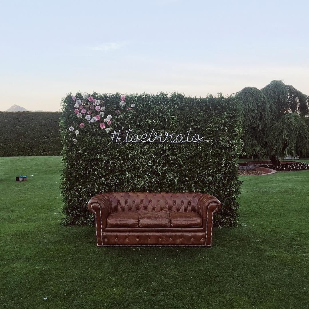 Otro elemento casi obligatorio en una boda joven y como herencia de las influencers es la creación de un hashtag en el que se unan todos los vídeos y fotografías del momento. Esta es una medida para que ellas ofrezcan contenido a los espectadores en un momento en el que no pueden depender del móvil y, por otro lado, los novios “comunes” pueden guardar recuerdos más espontáneos de los propios invitados sin perderse ningún detalle. En esto son expertos Laura Escanes y Risto Mejide, quienes desde el comienzo de su relación apostaron por el hashtag #toelrrato. En el gran día prohibieron el uso de móviles a todos los invitados, excepto en un rincón en el que aparecía un sillón idéntico al del Chester (programa en el que participa Risto Mejide) y un fondo verde con el hashtag #toelrrato.