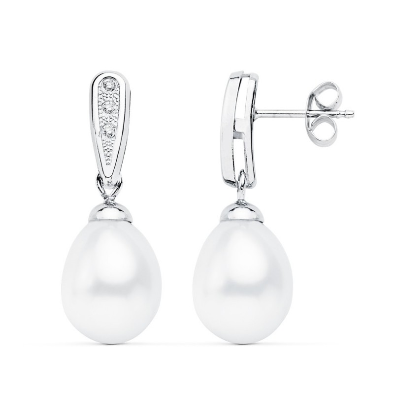 El tiempo es muy distinto y eso condiciona el vestido de la novia y, por ende, todo lo que rodea a esta gran pieza. Si atendemos a la joyería, hay que tener en cuenta que los escotes de los vestidos suelen ser más cerrados. Por esta razón, los pendientes tienden a ser más cortos para no recargar demasiado la zona de la cara y el cuello. Aún así, si prefieres usar unos pendientes más llamativos coge algunos en forma de lagrima que no sean excesivamente largos como los que ofrece Inmaculada Romero en oro blanco.