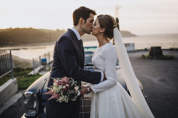 La siguiente novia es también un buen ejemplo. Cuello cerrado, un recogido elegante gracias a un moño al que se le aporta volumen en la parte superior y unos pendientes pequeños de perla. El resultado no puede gustarme más ❤