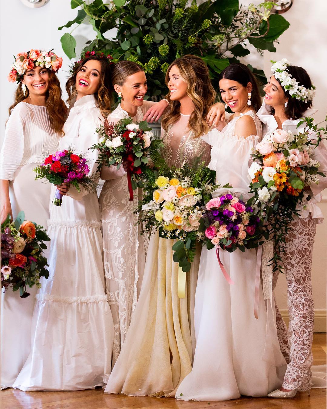 Además, muchos iban acompañados de coronas florales como complemento al ramo y que daban unidad a unos looks de novia que destacaban por su originalidad y su carácter rompedor con prendas que se alejaban de los clásicos vestidos y que, incluso, apostaban por una camisa y un pantalón.