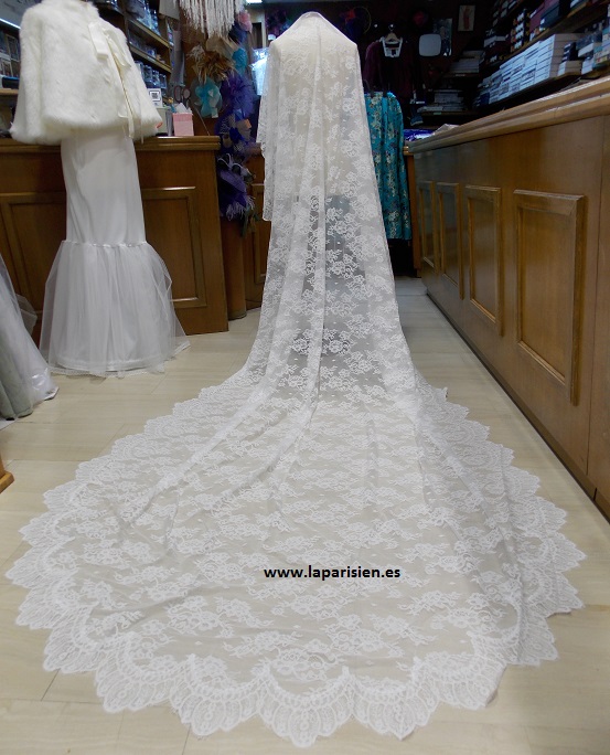 Bien, ya hemos llegado a la gran protagonista del día B. Como ya sabéis, hay libre elección para todo, así que la novia puede optar por no llevar velo, pero si decide llevarlo, existe la posibilidad de transformar el velo en una mantilla. La diferencia con respecto al velo es que presenta encaje en su totalidad.