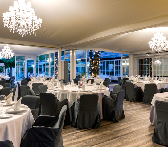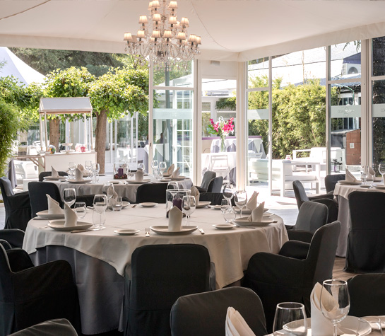 En un principio nos preocupamos por el espacio. El Restaurante San Francisco suele celebrar dos bodas a la vez porque tiene precios ajustados y está muy solicitado. Tienen dos espacios para las bodas: el clásico salón y la carpa acristalada.