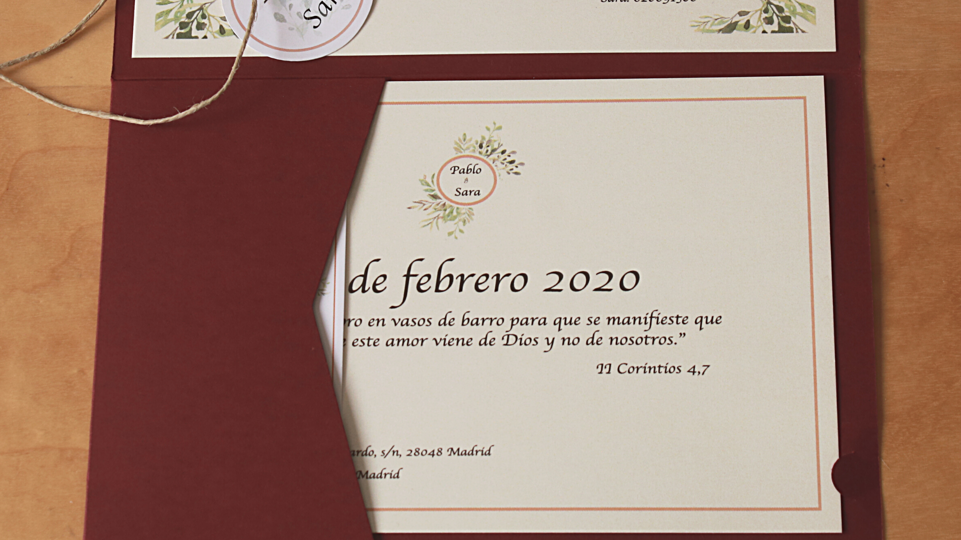 Sin embargo, ahí estaba, mi querida invitación y por un precio estupendo: 1,13 euros/unidad. ¿Qué incluía? El sobre de color, dos tarjetones, el logotipo y las cintas para cerrarla. También tenía otro sobre blanco para enviarlo por correo, aunque nosotros no lo utilizamos porque las dimos en mano.