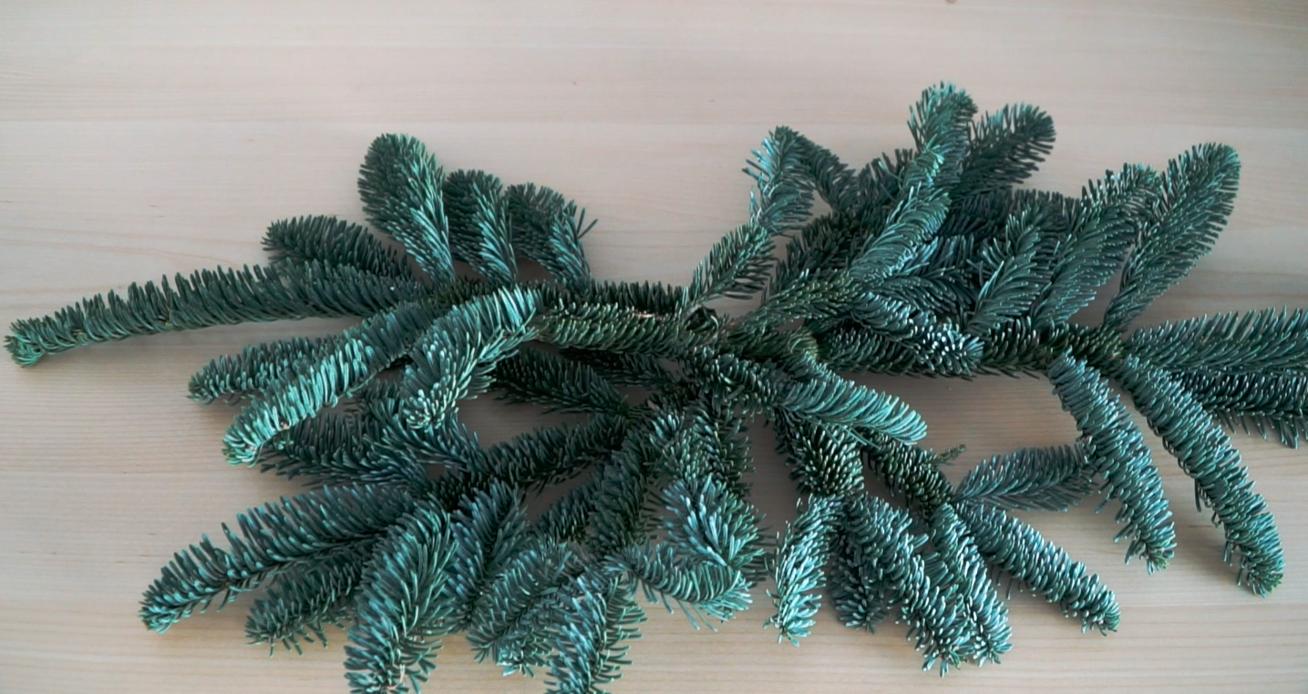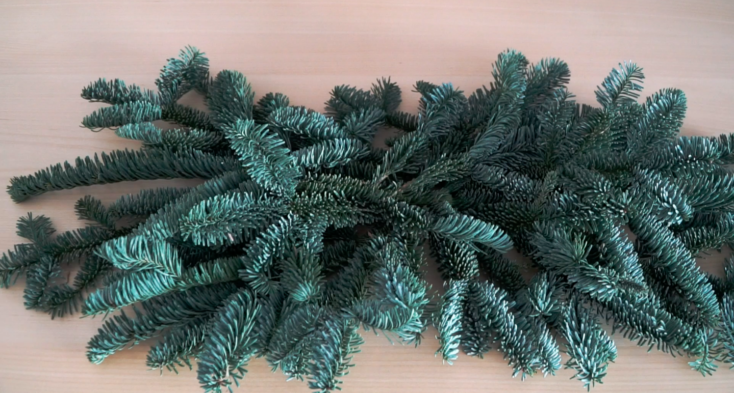 - Usamos las ramas más grandes de pino para crear la base y reservamos las más alargadas para los extremos (al final).